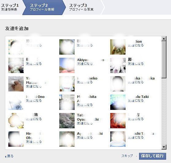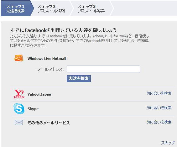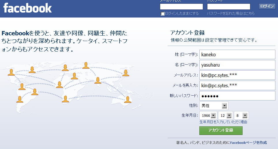 フェイスブックとは2004年にハーバード大学で生まれたインターネット上のコミュニティです。 写真やビデオをアップロードしたり、友達へ近況報告などをすることにより、人と人とのつながりを深めます。 日本のネットではニックネームなどでIDを登録してネット上の架空キャラクターになって書き込みなどをする習慣が多いのですが、このフェイスブックでは、実名登録が義務付けられています。 会った事がないような人と無差別に友達になるようなコミュニティとは違います。実名で職場や学校の知り合いもしくは知り合いの知り合い程度の範囲内で、近況報告などをしながら活用しましょう。 同姓同名の人と区別が付くように、必ず自分とわかる写真を登録するようにしましょう。顔写真を使うのは当然です。 アカウントの登録http://www.facebook.com/ ↑ フェイスブックのページを開き、画面右側の姓、名、メールアドレス、パスワード、性別、生年月日を入力して、アカウント登録をクリックします。 ![]() セキュリティチェックの画面が開くので、表示されるアルファベットを入力し、アカウント登録ボタンをクリックします。 ![]() 友達を検索 メールアドレスから、登録されている友達を探すことができますが、とりあえず、スキップをクリックします。 ![]() 名前と読み仮名を入力し、学歴、勤務先などを入力します。保存して続行をクリックします。 ![]() 関連の友達が表示されますが、とりあえず保存して続行をクリックします。 ![]() 写真の登録 マイピクチャから登録する場合は、写真を選択をクリックして写真を選びます。 ウェブカメラが接続されている場合は、写真を撮るをクリックして撮影しましょう。 写真が登録できたら、保存して続行をクリックします。 ![]() 登録完了です。 ![]() プロフィールを編集をクリックし、プロフィールを完成させましょう。 また、使い方の詳しい説明は、https://www.facebook.com/helpこちらを参考にしてください。 ●熱暴走を防ぐためのクリーニング ノートパソコンは特にホコリがたまりやすく、掃除が困難です。どこを掃除するのか? ●データのバックアップ法 とにかくデータはバックアップしましょう!データの保存先は? ●セーフモードで起動させる Windowsが正常に起動できないときは、セーフモードで起動させてみる。 ●システムの復元 変なソフトが入り込んだら、入る前の状態まで復元してみましょう。 |